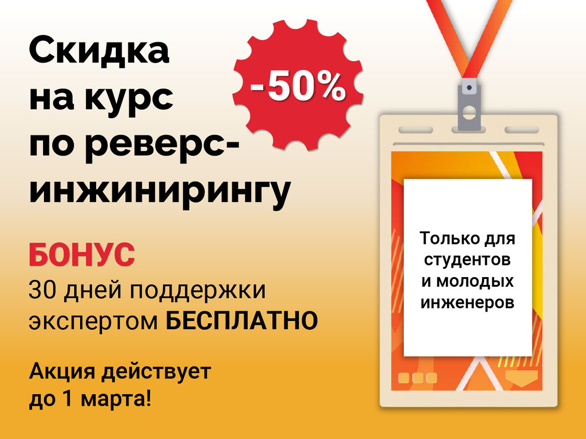 2.1 В период проведения Акции, указанной в п.1.1 правил, любой студент технического ВУЗа или молодой инженер в возрасте до 35 лет может записаться на обучение на сайте reversekurs.ru или complexcad.ru и получить скидку 50% от полной стоимости пакета РЕВЕРС или пакета РЕВЕРС+ . Скидка предоставляется при оплате выбранного пакета по специальной ссылке.