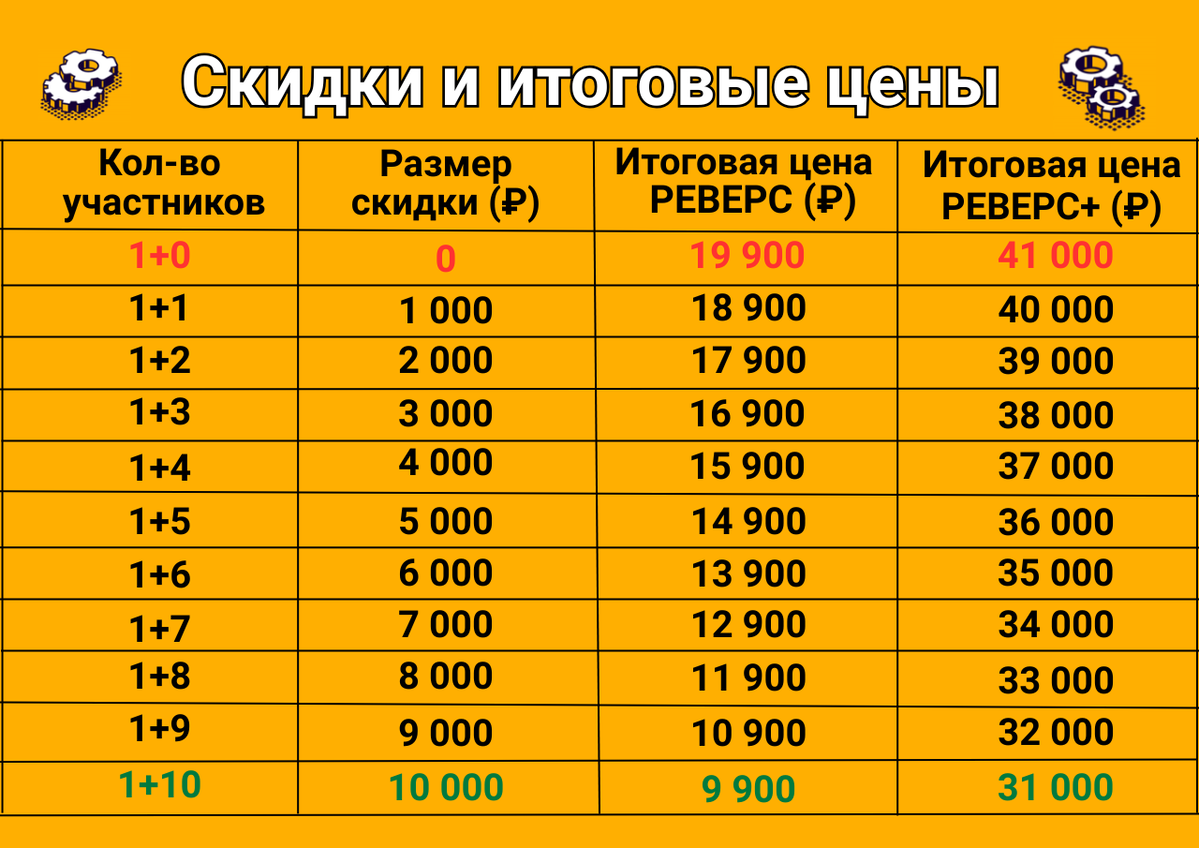 - до 9 900 ₽ на пакет РЕВЕРС (если привести 10 человек)